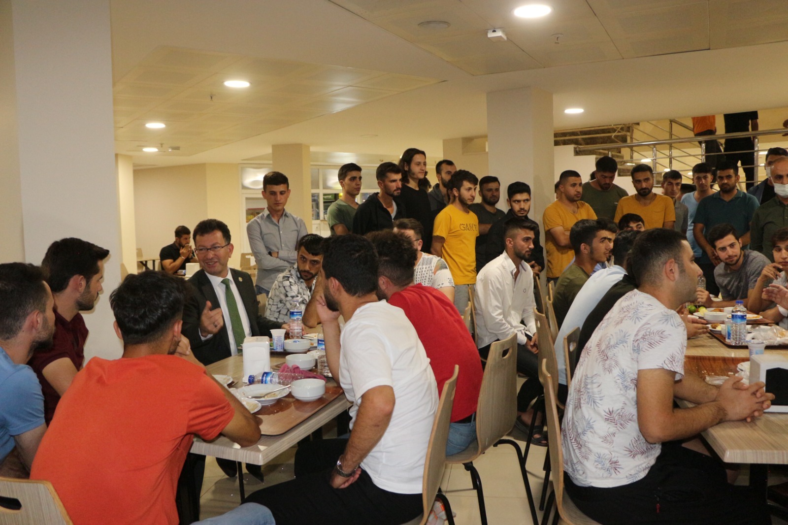 Şırnak Valisi Ali Hamza Pehlivan, Rektörümüz Prof. Dr. Mehmet Emin Erkan, Gençlik Spor İl Müdürü Beytullah Birlik, Yurt Müdürü Rezan Birlik ve öğretim görevlileri üniversitemiz yerleşkesinde bulunan Kredi ve Yurtlar Kurumu(KYK) Cezeri Yurdu’nda kalan öğrencilerle bir araya gelerek onlarla yemek yediler. Önceki akşam, Kredi ve Yurtlar Kurumu(KYK) Cezeri Yurdu’na gelerek öğrencileri ziyaret eden Vali Pehlivan, “Şırnak'a değişik vilayetlerimizden gelen kardeşlerimiz Şırnak Üniversitemizin çatısı altında, fakültelerimizde, meslek yüksekokullarımızda eğitim öğretim alıyorlar. Öğrencilerimiz bu bağlamda gelip kayıtlarını yaptılar. Üniversitemize bu sene olan ilgi arttı. Bundan dolayı seviniyoruz. Yurtlarımıza olan talep de arttı. Şunu memnuniyetle ifade etmek isterim; erkek yurdumuzda bütün öğrencilerimizi barındıracak kapasite var. Kız yurdumuza artan talepleri karşılamak üzere valilik olarak okullar bölgesinde Milli Eğitime ait olan bir yurdu Kredi ve Yurtlar Genel Müdürlüğüne tahsis ettik. Şuanda son düzenlemeler yapılıyor. 1-2 gün içerinde tamamlanacak. Şehrimizde öğrencilerimizin barınma sorunu yoktur” dedi. Üniversitemizin bu yıl ülkemizin dört bir tarafından tercih edildiğini belirten Rektörümüz Prof. Dr. Erkan da, bu durumun kendilerini çok mutlu ettiğini dile getirerek, şunları söyledi: “Üniversitemiz her alanda gelişiyor. Bunun en büyük göstergesi de bu yıl çok sayıda bölümlerimizin kontenjanları doldu. Yurt konusunda da Valimiz Ali Hamza Pehlivan’ın girişimleriyle öğrencilerimiz problem yaşamadan çözüldü. Öğrencilerimiz adına kız öğrencilerimiz için 300 kişilik yurt tahsis eden Sayın Valimiz Ali Hamza Pehlivan’a çok teşekkür ederim.”4 bin 448 öğrencinin okuduğu Üniversitemizde Kredi Yurtlar Kurumuna ait 572 kişilik erkek yurdu ve 748 kişilik kız yurdu bulunuyor. Ayrıca yedek kalan kız öğrencileri için ise Milli Eğitim Müdürlüğüne ait bir bina Kredi ve Yurtlar Kurumuna tahsis edildi. Bir hafta içinde faaliyette girecek olan yurtta 300 kız öğrenci kalabilecek.