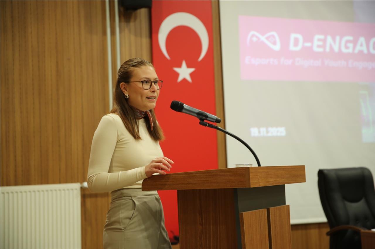 Beden Eğitimi Ve Spor Yüksekokulu Arş. Gör. Rıdvan Çakır’ın AB destekli D-Engage projesini tanıtımı ile devam eden programda Çakır, espor konusunda detaylı içeriklerin yer aldığı çevrim içi bir eğitim platformunu projenin temel çıktısı olarak geliştirdiklerini, bu platformdan lisans ve lisansüstü öğrenciler, mezunlar, antrenörler ve eğitimcilerin yararlanabildiğini aktardı.