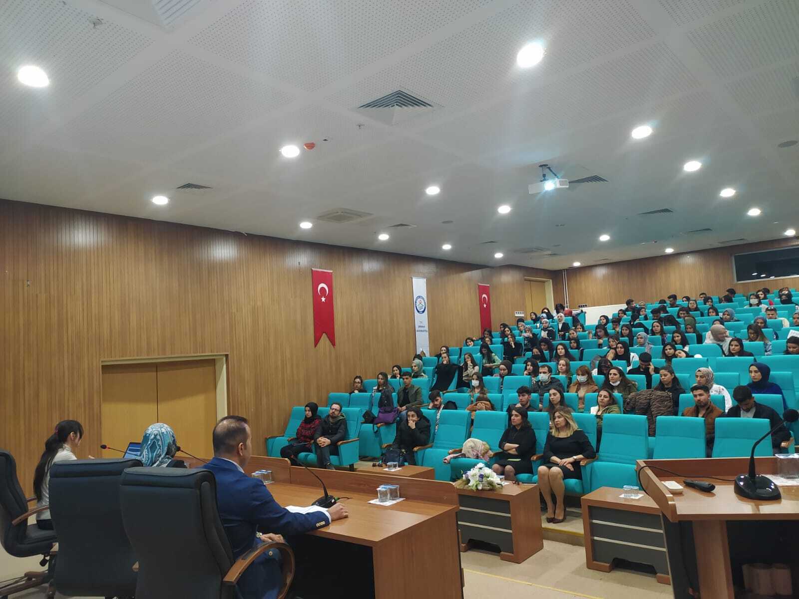Üniversitemiz Kadın ve Aile Çalışmaları Araştırma ve Uygulama Merkezi tarafından 15 Temmuz Kültür Merkezi Ebul-iz El Cezeri Salonunda 8 Mart Dünya Kadınlar Günü Paneli düzenlendi. Panele Rektörümüz Prof. Dr. Mehmet Emin Erkan, Rektör Yardımcımız Prof. Dr. Derya Yücel, akademik ve idari personelimiz ile öğrencilerimiz katıldı. Burada bir konuşma yapan Rektörümüz “Dünya çapında kutlanan bu anlamlı gün vesilesiyle belirtmek isterim ki, Şırnak Üniversitesi olarak payımıza düşen sorumluluğu yerine getirmek için çaba sağlamaya devam ediyoruz. Kadınların daha fazla yönetici pozisyonunda yer alması için elimizden geleni yapıyor ve bütün kadınların Dünya Kadınlar Günü'nü kutluyorum” şeklinde konuştu. Moderatörlüğünü Arş. Gör. Gülizar Artuç’un yaptığı panele Doç. Dr. Süreyya Ece “Ataerkil İş Dünyasında Kadının Mücadelesi” isimli sunumu ve Dr. İlker İşler “ Orhan Kemal Romanlarındaki Emekçi Kadın Karakterler Üzerine Bir Değerlendirme” isimli sunumu ile katıldı.