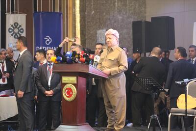 tarafından sempozyuma davet edilen KDP Lideri Mesud Barzani, KDP Siyasi Büro üyeleri