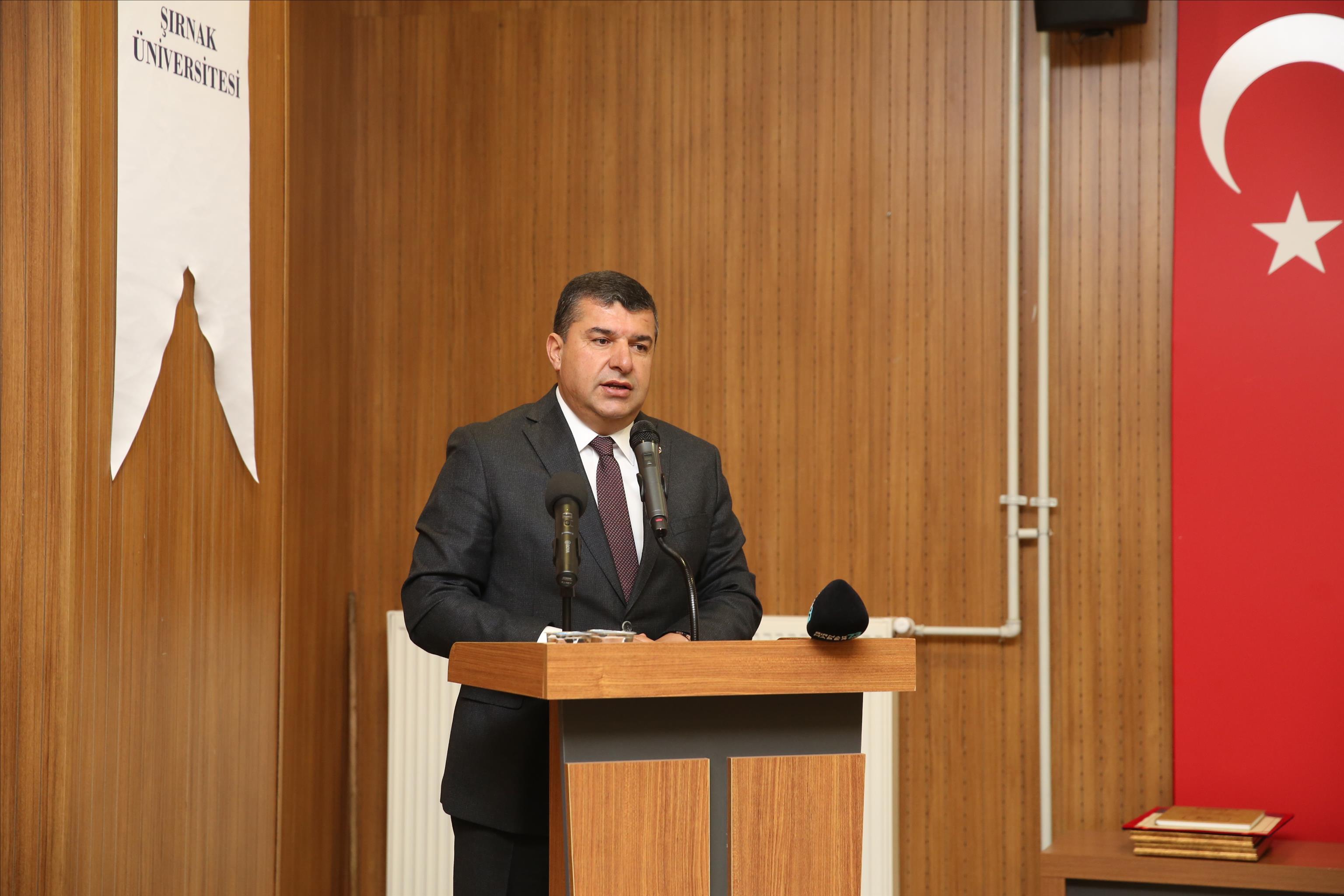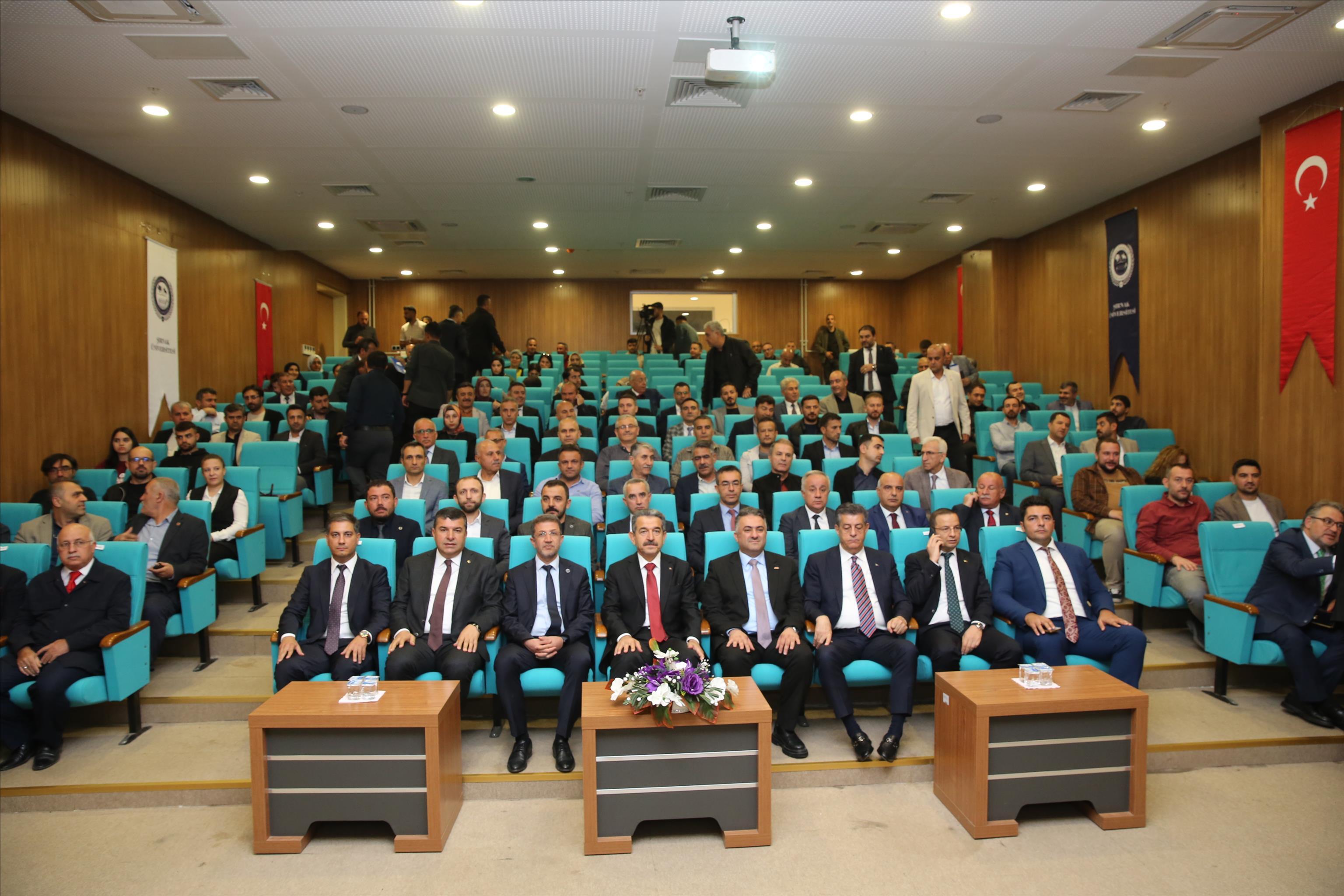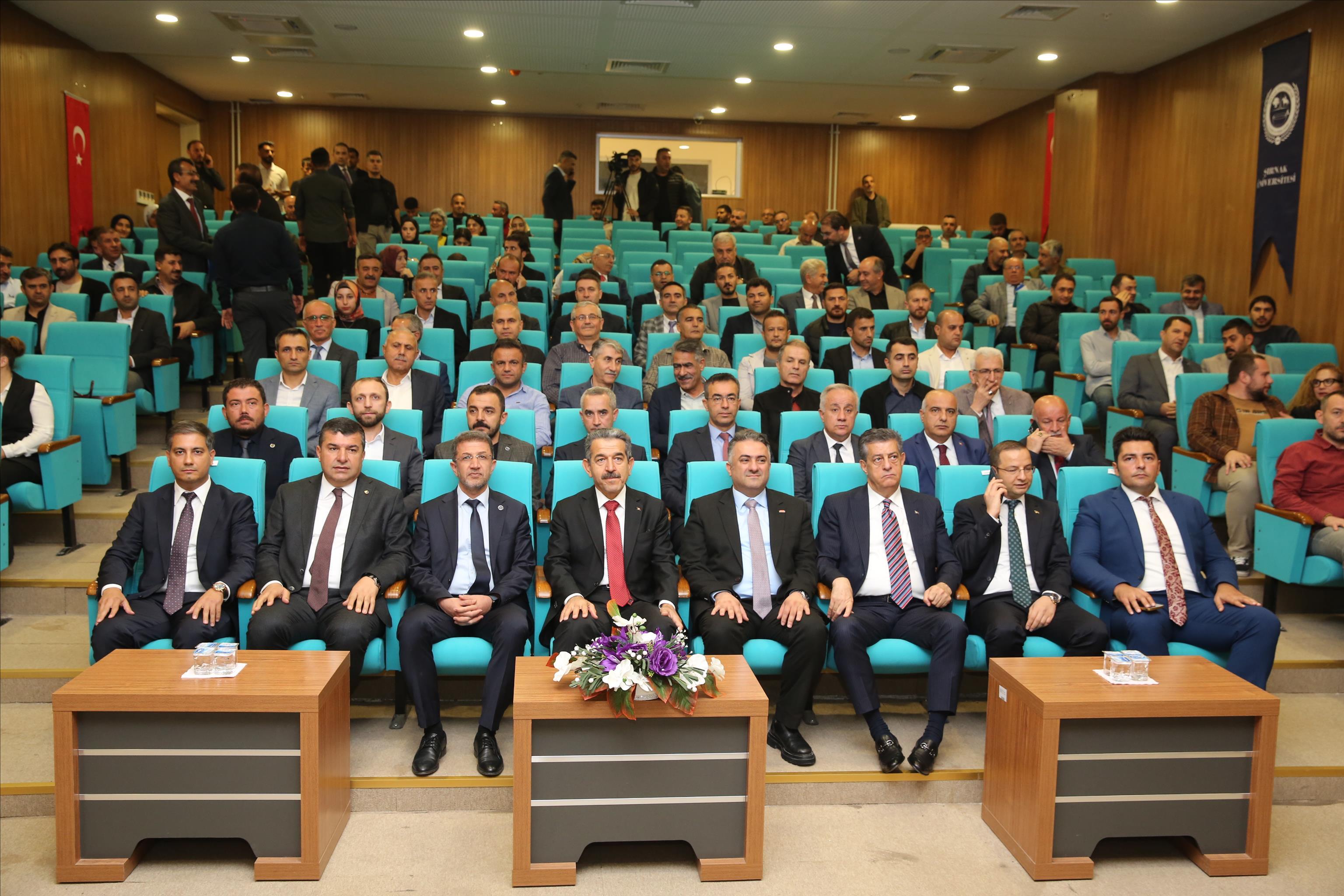 konferansa; Şırnak Valisi Birol Ekici, Şırnak Belediye Başkanı Mehmet Yarka, Üniversitemiz