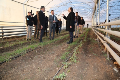 Şırnak Valisi Ali Hamza Pehlivan ve Belediye Başkanı Mehmet Yarka, Rektör Yardımcımız Prof. Dr. Derya Yücel ile Ziraat Fakültesi Öğretim Üyesi Prof. Dr. Celal Yücel’in birlikte hazırladığı Avrupa Birliği AR-GE Projesi kapsamında kurulan domates serasını ziyaret etti. Rektörümüz Prof. Dr. Mehmet Emin Erkan, Üniversitemiz Kampüs Yerleşkesinde kurulan serayı ziyaret eden Şırnak Valisi Ali Hamza Pehlivan ve Belediye Başkanı Mehmet Yarka’ya yapılan çalışmalarla ilgili bilgiler verdi.Avrupa Birliği AR-GE Projesi kapsamında domates serası kurulduğunu ifade eden Rektörümüz Prof. Dr. Erkan, Şırnak’ta seralarda meyve ve sebze yetiştiriciliğinin mümkün olabileceğini ve bölgedeki çiftçilere daha verimli tarımın yapılabileceğini göstermek amacıyla kampus alanında sera kurduklarını söyledi. Şırnak Valisi Ali Hamza Pehlivan da Üniversitemizin, hazırladığı projelerle şehrin gelişmesine büyük katkı sağladığını belirterek, domates serası projesinin hazırlanmasında emeği geçenlere teşekkür etti.İlimizin ve bölgemizin seracılık için verimli olduğunu ifade eden Belediye Başkanı Mehmet Yarka , artan nakliye maliyetleri de göz önüne alındığında tarımla uğraşan çiftçilerin seracılığa ağırlık vermeleri gerektiğini belirterek, projenin hayırlı olmasını diledi.Projeye Şırnak Valiliği de finansman desteği sağladı. 1 dekarlık alanda kurulan, ısıtma ve ışıklandırma sistemlerinin uygulandığı seraya 2800 adet F1 Hibrit domates fidesi dikildi. Ürünlerin Mayıs ayı içinde hasadının yapılması planlanıyor.